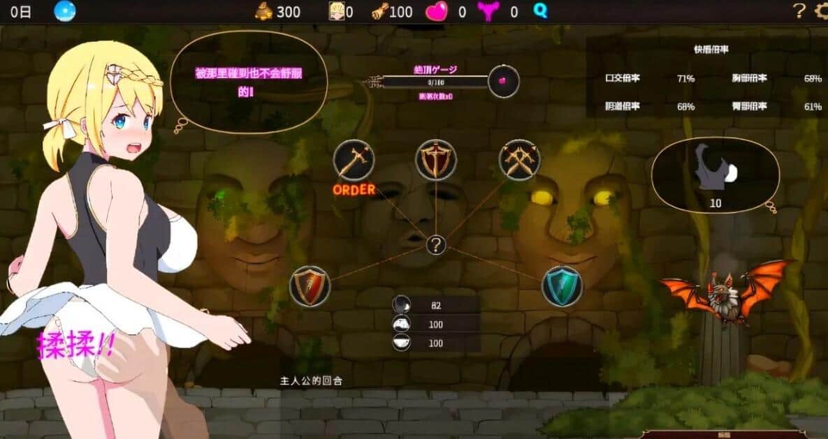 游戏中会有战斗场景,玩家可以触碰女主角的身体,进行解除诅咒的行为,甚至与女主角共度一夜。