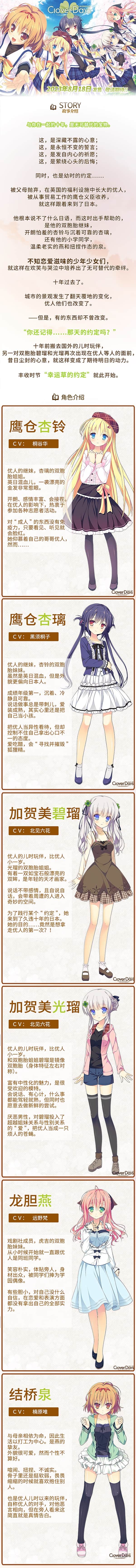 《幸运草的约定(Clover Day’s)》是由日本美少女游戏知名品牌Alcot为创立10周年所制作的纪念作品。
