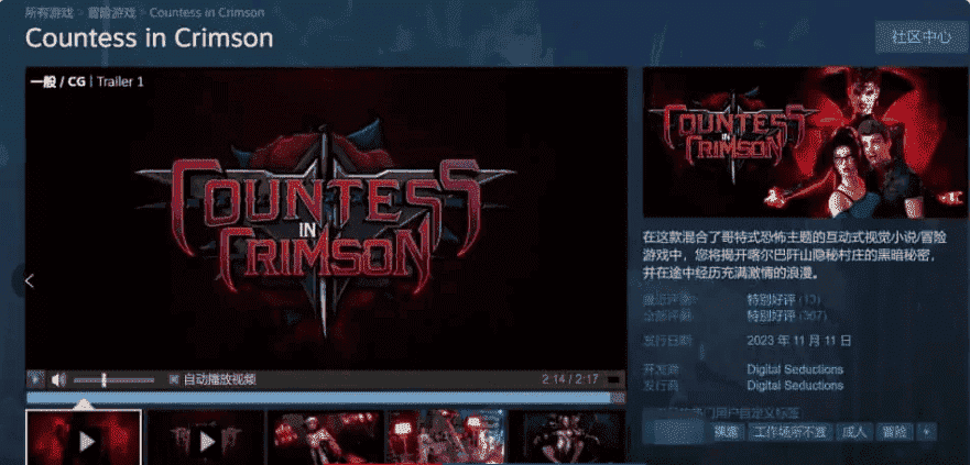 《Countess in Crimson》是一款互动式视觉小说/冒险游戏结合体,注重对话,当然还有充满激情的浪漫情节。